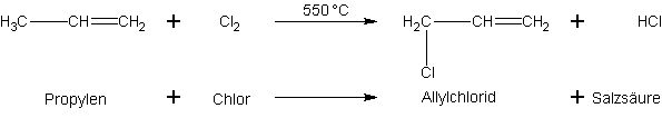 Allylchlorid CH2=CH-CH2-Cl oder 3-Chlor-propen-(1) ist leicht herstellbar aus Propylen durch Chlorierung bei 550 °C: