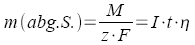 abg.S.: abgeschiedener Stoff z: Ladungszahl des Ions F: Faraday-Konstante s. K6 1.1.3 η: Stromausbeute |