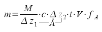2: Oxidationszahlen V: Volumen der verbrauchten Maßlösung (ml) t: Titer fA: Aliquotierfaktor Δz1; 2: Änderung der Oxidationszahlen Ä: Maßanalytische Äquivalentmasse; Zahlenwerte für die rechnerische Vereinfachung werden tabelliert, s. Tabellenbuch |