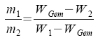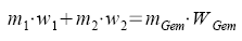 Mischungskomponenten 1 und 2, Gem: Gemisch Es gilt m1 + m2 = mGem |
