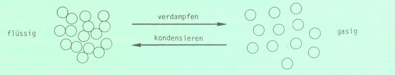 Die Teilchen ( Moleküle ) eines Stoffes werden durch gegenseitige Anziehung mehr oder weniger zusammengehalten. Von dieser Anziehung hängt es weitgehend ab, in welchem Aggregatszustand sich ein Stoff bei einer bestimmten Temperatur befindet.
