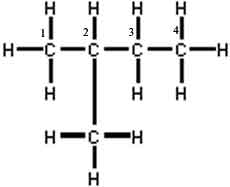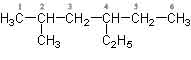 Die Lage der Seitenkette ist damit an den C-Atomen 2 und 4 der Hauptkette festgelegt. Die Numerierung der Hauptkette ist so zu legen, daß die C-Atome mit Verzweigung die kleinstmöglichen Ziffern erhalten.