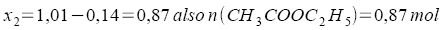 x mol CH3COOC2H5 gleich (1-x) mol C2H5OH