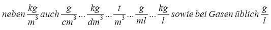 Damit ergeben sich als Einheiten (Einheitenzeichen) für die Dichte: