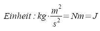 Einheit: kg * m/s2 * m = Nm = J