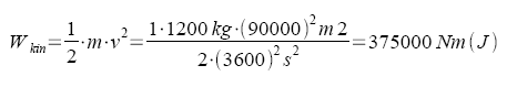 Soll die Masse m auf die Geschwindigkeit v gebracht werden, so muß sie von 0 m/s auf v m/s beschleunigt werden. Die wirksame Beschleunigung a soll dabei konstant bleiben. Die wirksame Kraft ist F = m * a; die zu verrichtende Arbeit entlang des Beschleunigungsweges s wird dann