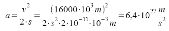 b) Beschleunigung: (VE = 16000 km/s, s = 2 * 10-11 mm)