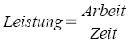Dieselbe Arbeit erbringt eine hohe (niedrige) Leistung, wenn sie in vergleichsweise kurzer (langer) Zeit verrichtet wird; Leistung und Zeit sind umgekehrt propertional.