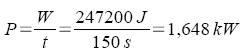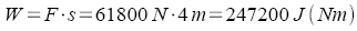 Die verrichtete Arbeit beträgt 247,2 kJ, die Förderleistung 1,65 kW. Die Pumpe hat einen Wirkungsgrad von 0,824 bzw. 82,4%.