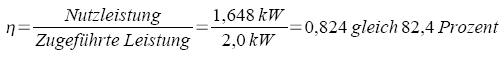 | η ist ein Verhältnis zweier gleicher Größen, daher ohne Einheit. Der Wert von η ist stets < 1. |