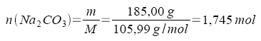 Berechne die Stoffmenge von 185,00 g Natriumcarbonat, Na2CO3.