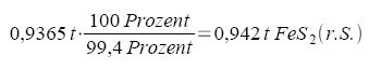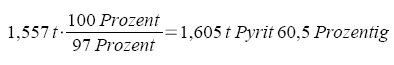 10,0 t Pyrit 62%ig enthalten 6,2 t FeS2 (r.S.)