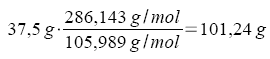 Die Masse an Wasser setzt sich zusammen aus dem Anteil des eingewogenen Kristallwassers (101,24 g - 37,5 g = 63,74 g) und dem Anteil des "Lösemittels-Wassers".
