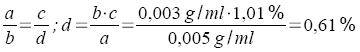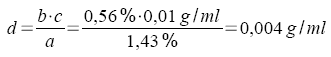 Mit dem errechneten Wert d ergibt sich die gesuchte Dichte x zu 1,07 g/ml - 0,004 g/ml = 1,066 g/ml.