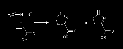 Reaktion eines 1,3-Dipols mit einem Alken.