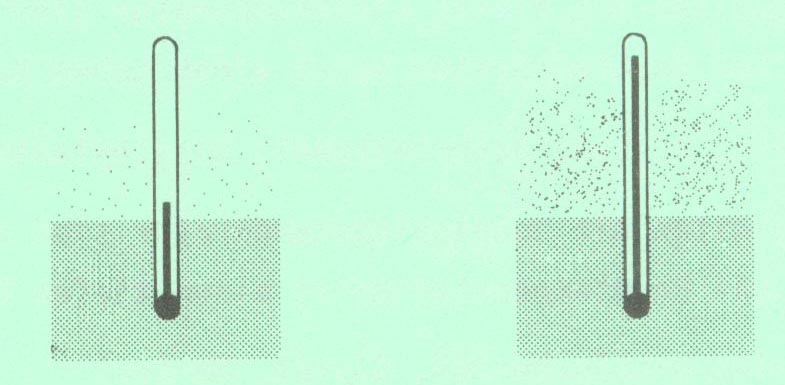 Solange der Dampfdruck einer Flüssigkeit kleiner ist als der Umgebungsdruck, treten nur Moleküle an der Oberfläche aus der Flüssigkeit aus. Dieser Vorgang wird als Verdunsten bezeichnet. Zum Verdunsten wird Wärmeenergie benötigt. Diese Verdunstungswärme wird entweder der Flüssigkeit ( wodurch sich diese abkühlt ) oder der Umgebung entzogen.